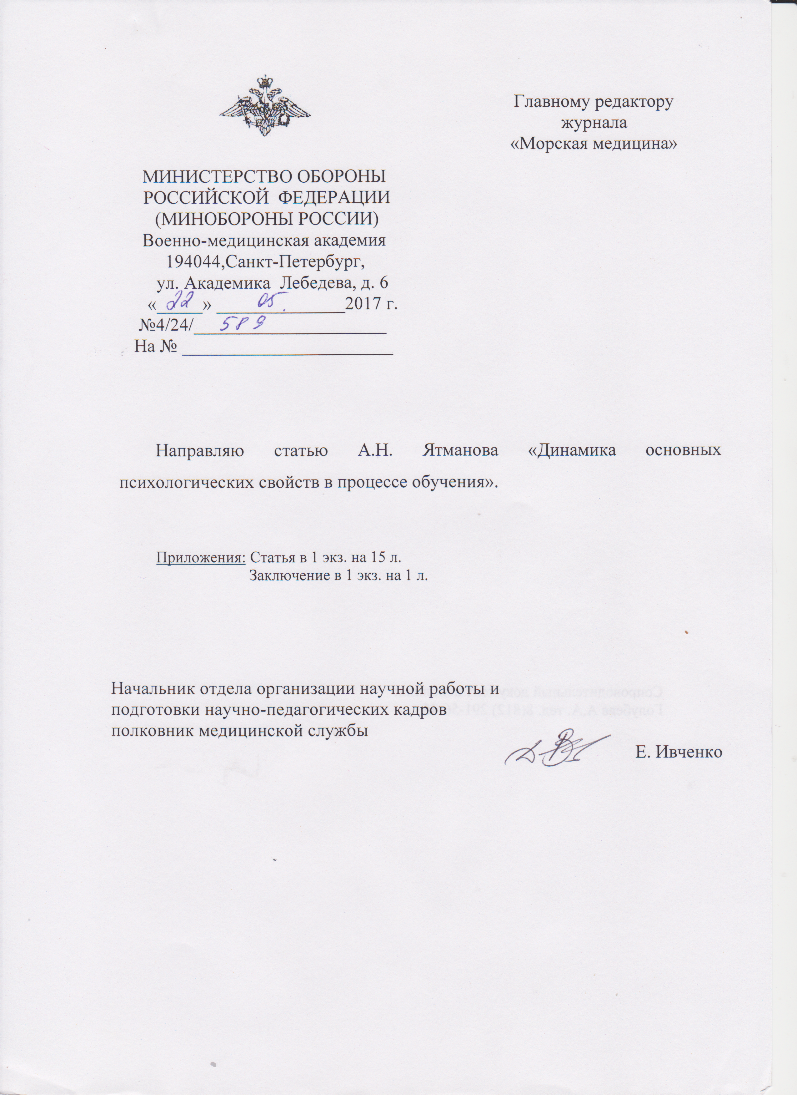 ДИНАМИКА ОСНОВНЫХ ПСИХОЛОГИЧЕСКИХ СВОЙСТ КУРСАНТОВ В ПРОЦЕССЕ ОБУЧЕНИЯ