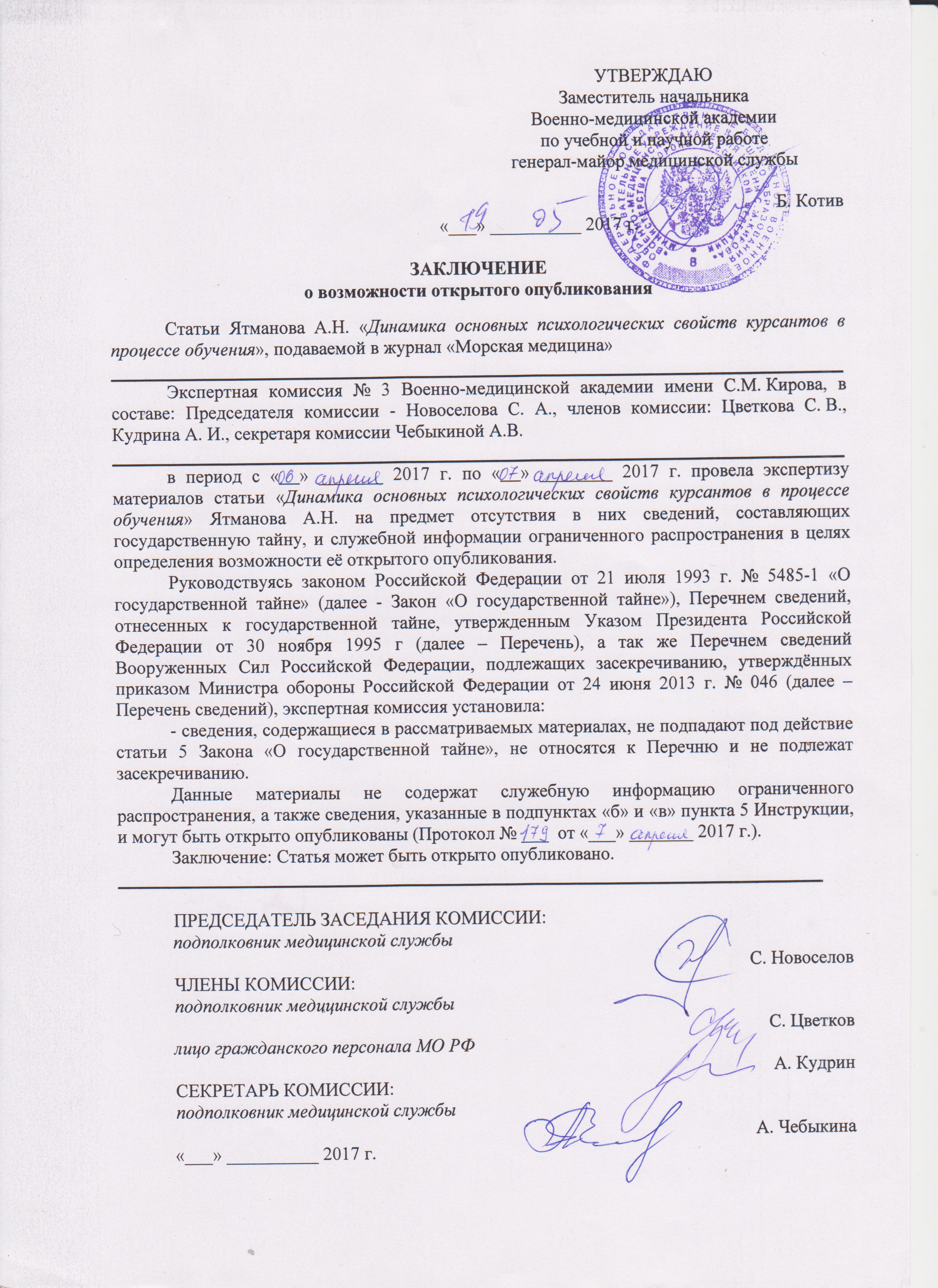 Ятманов А.Н. ДИНАМИКА ОСНОВНЫХ ПСИХОЛОГИЧЕСКИХ СВОЙСТ КУРСАНТОВ В ПРОЦЕССЕ ОБУЧЕНИЯ. Морская медицина. 2018;4(1). https://doi.org/10.22328/2413-5747-2018-4-1-