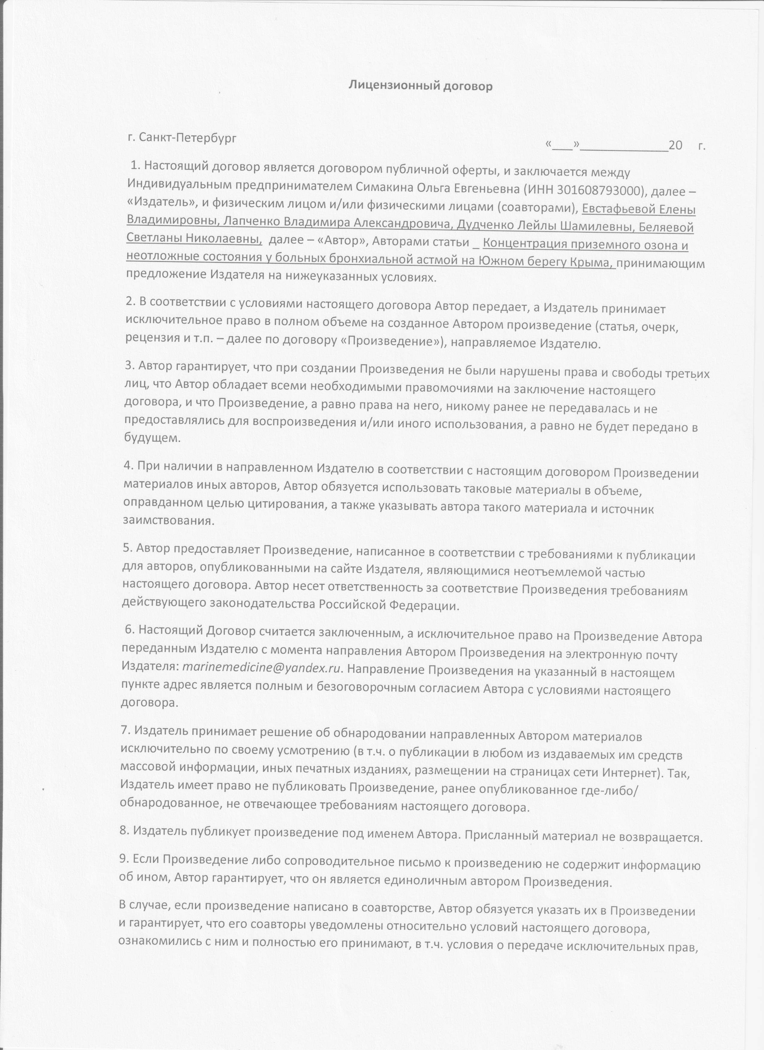 1. Лицензионный договор 1 | |