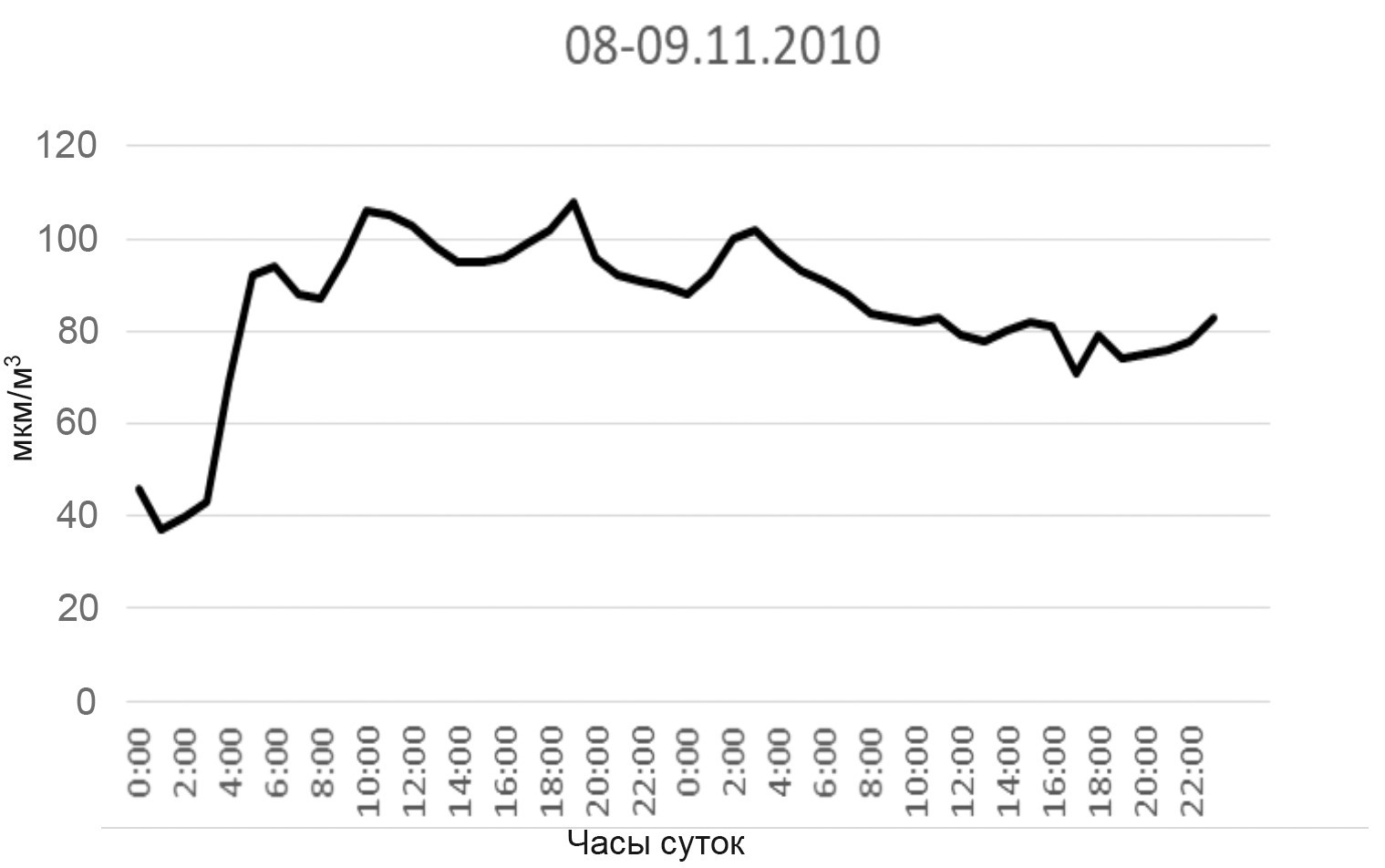 11. Рис. 5. Почасовые изменения концентрации тропосферного озона 8–9 ноября 2010 г. | |