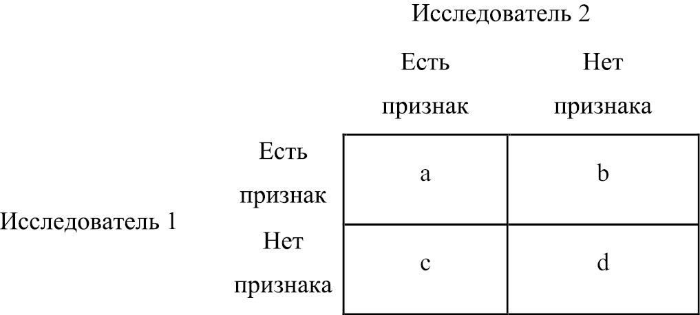 2. Рис. 2. Четырехпольная таблица для расчета каппа-статистики с помощью формул. | |