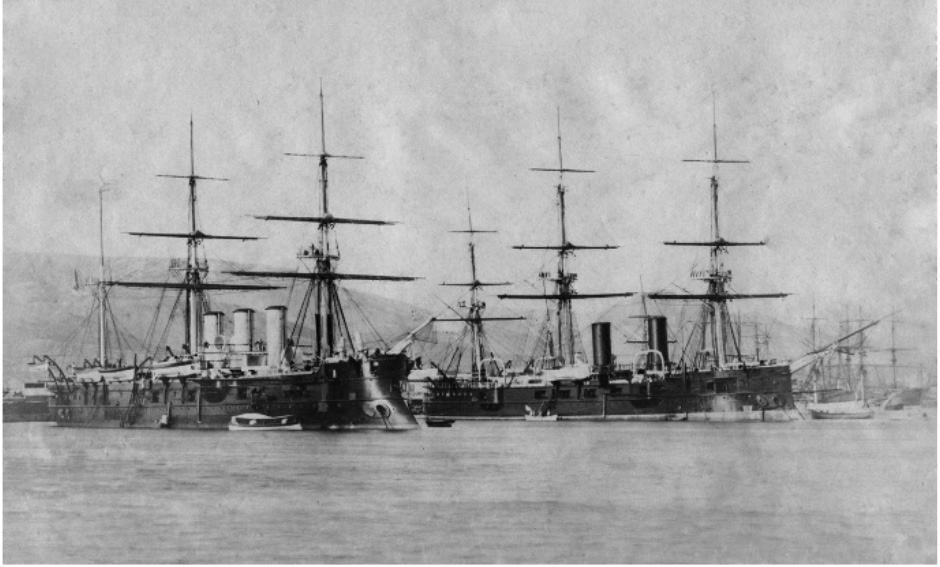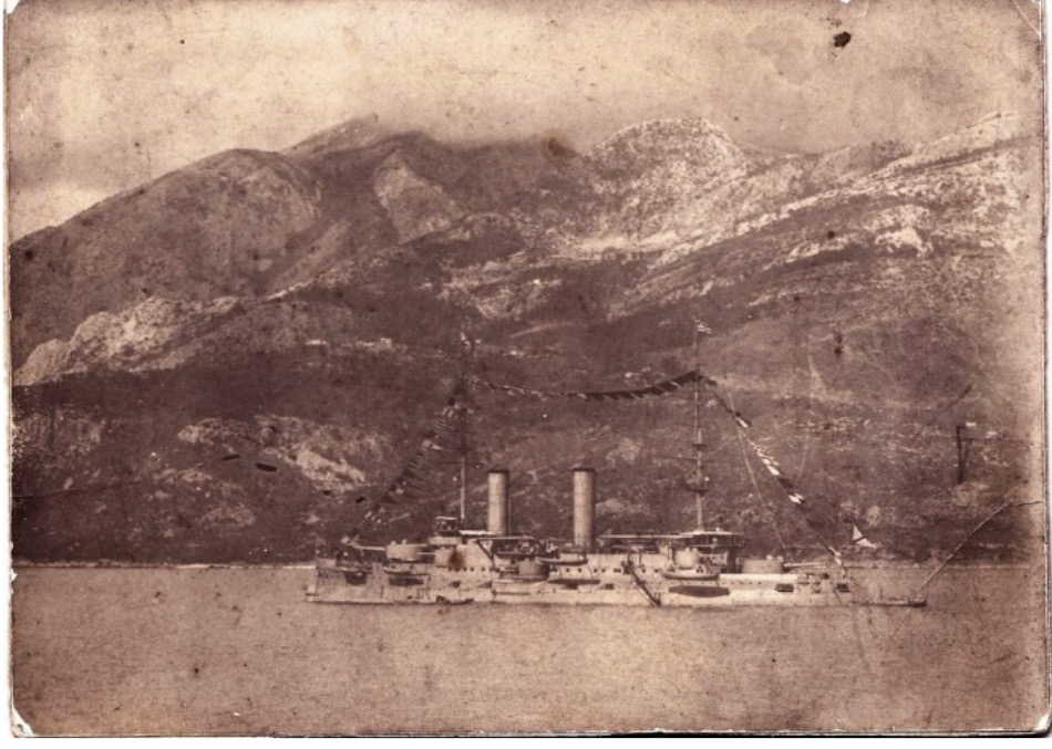 |  | 1. Рис. 1. Греция. 1890. Броненосный крейсер «Память Азова» и полуброненосный фрегат «Владимир Мономах» в Пирее | |