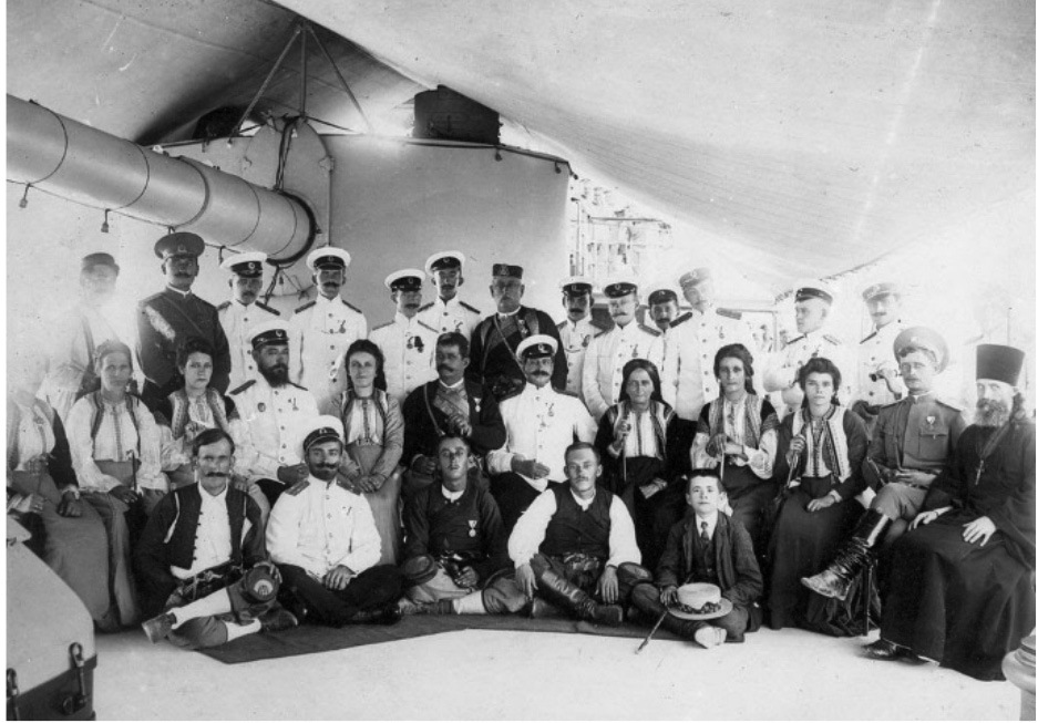 6. Рис. 6. Прием черногорской делегации на борту крейсера «Адмирал Макаров». У офицеров на левой стороне мундира – Орден Князя Даниила I