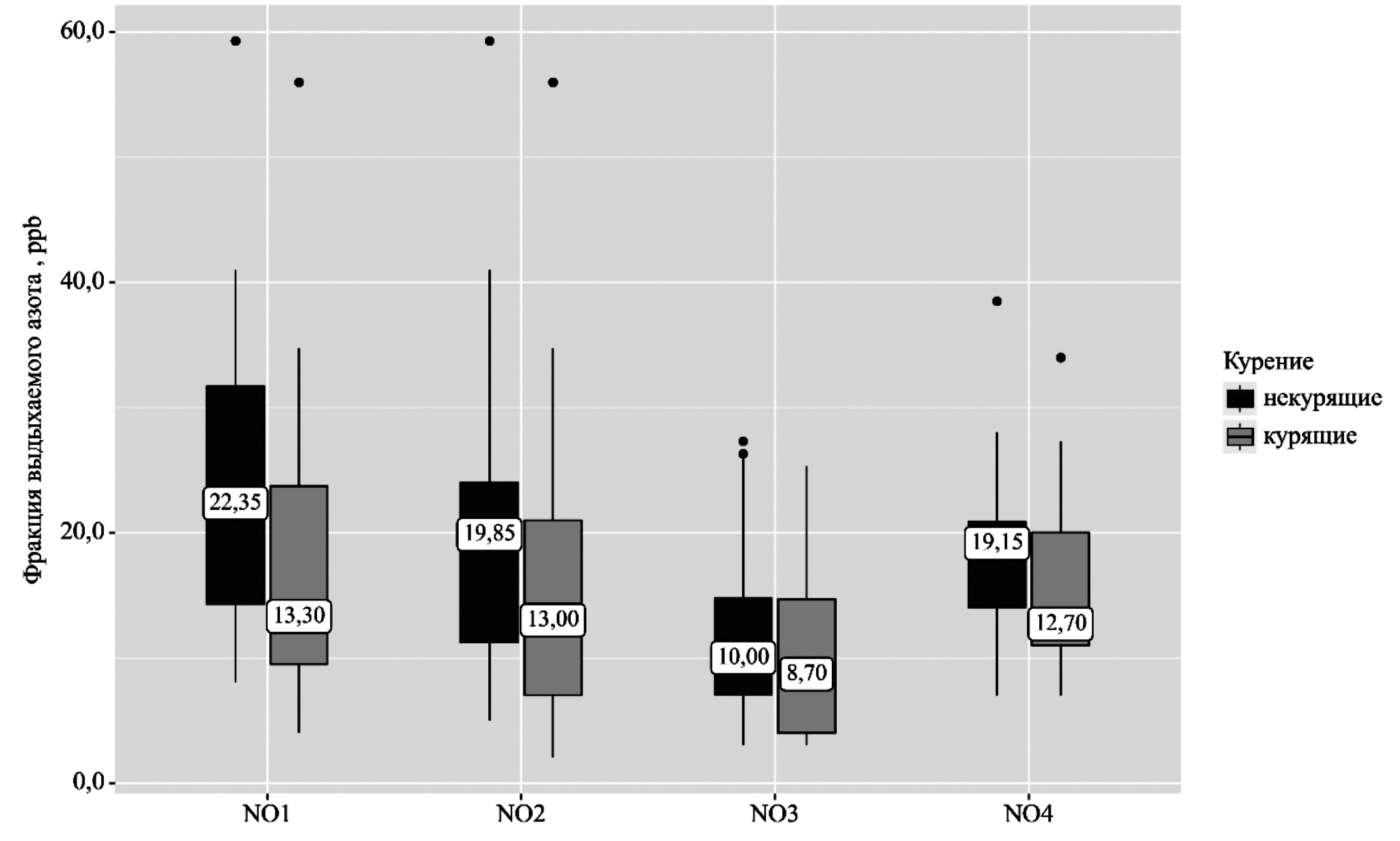 4. Fig. 1. Analysis of the dynamics of the fraction of exhaled nitrogen depending on smoking | |
